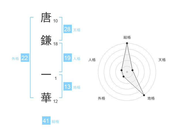 唐鎌 一華さんを姓名の画数から五運を鑑定