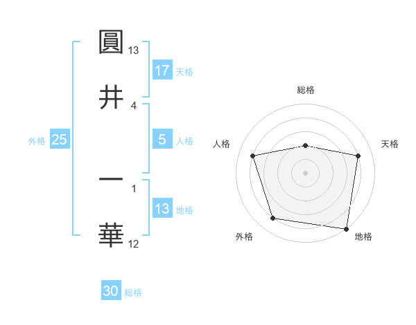 圓井 一華さんの天格は17画の4点!
