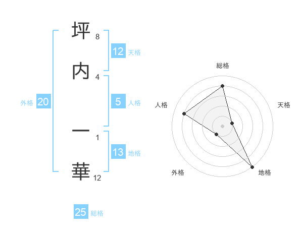 坪内 一華さんの総格は25画の4点!