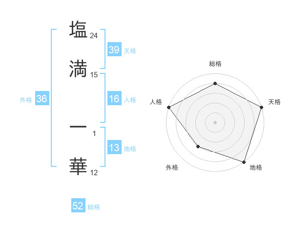 塩満 一華さんを姓名の画数から五運を鑑定