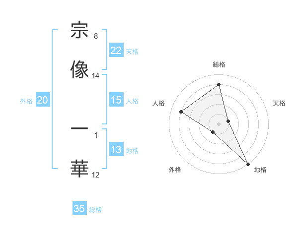 宗像 一華さんの天格は22画の1点!