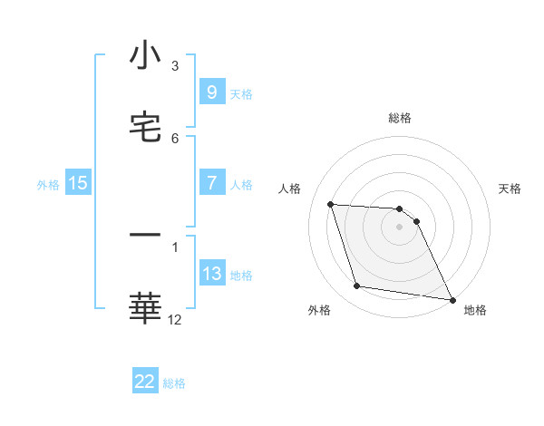 小宅 一華さんの地格は13画の5点!