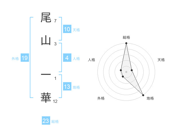 尾山 一華さんの総格は23画の5点!