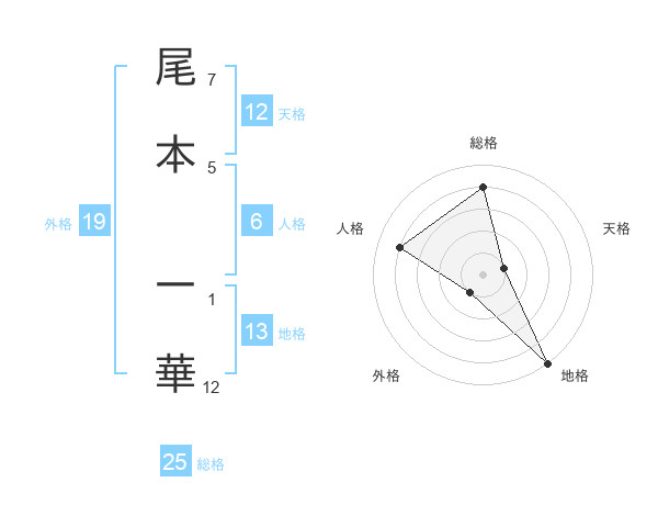 尾本 一華さんの天格は12画の1点!