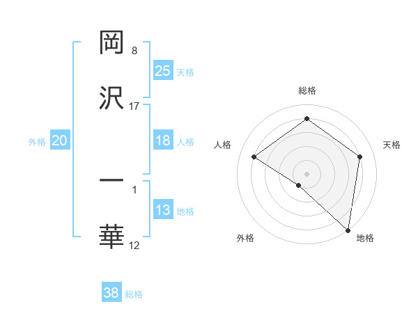 岡沢 一華さんの天格は25画の4点!