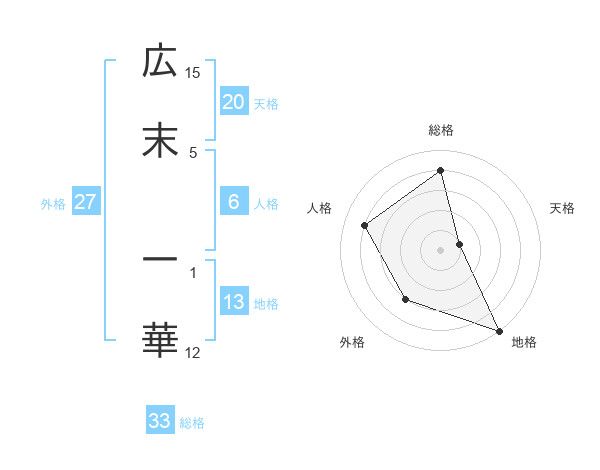 広末 一華さんを姓名の画数から五運を鑑定