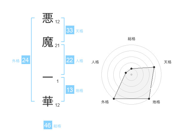 悪魔 一華さんを姓名の画数から五運を鑑定