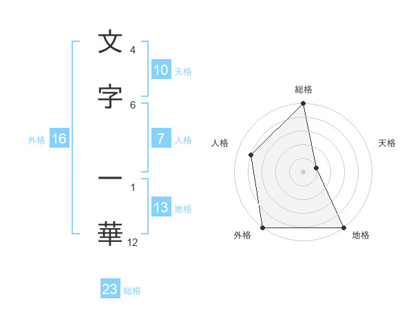 文字 一華さんの外格は16画の5点!