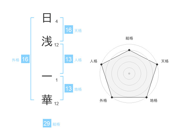 日浅 一華さんの天格は16画の5点!