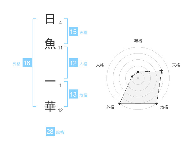 日魚 一華さんの外格は16画の5点!