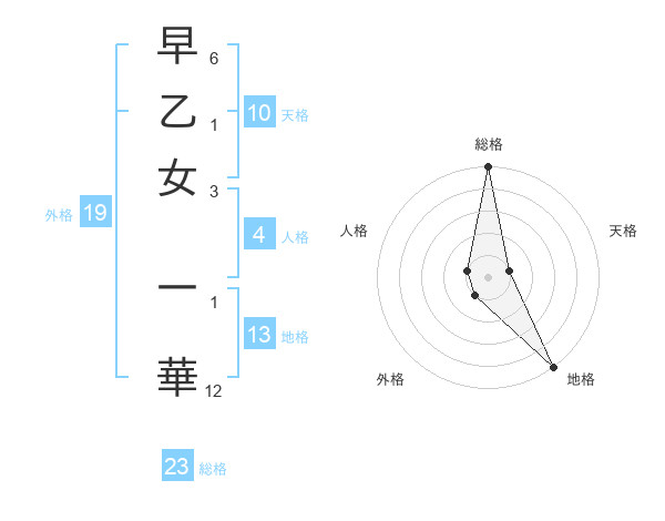 早乙女 一華さんの総格は23画の5点!