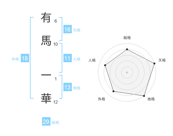 有馬 一華さんを姓名の画数から五運を鑑定