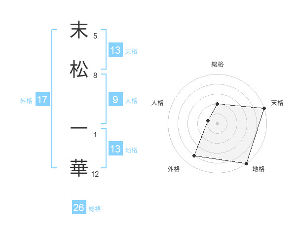 末松 一華さんの天格は13画の5点!