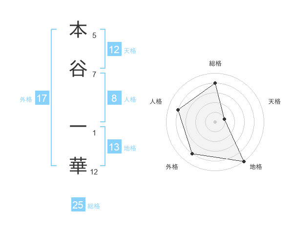 本谷 一華さんの天格は12画の1点!