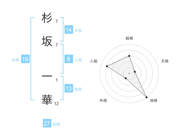 杉坂 一華さんの総格は27画の3点!