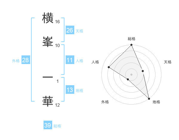 横峯 一華さんの総格は39画の5点!