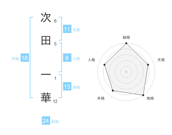 次田 一華さんの総格は24画の5点!
