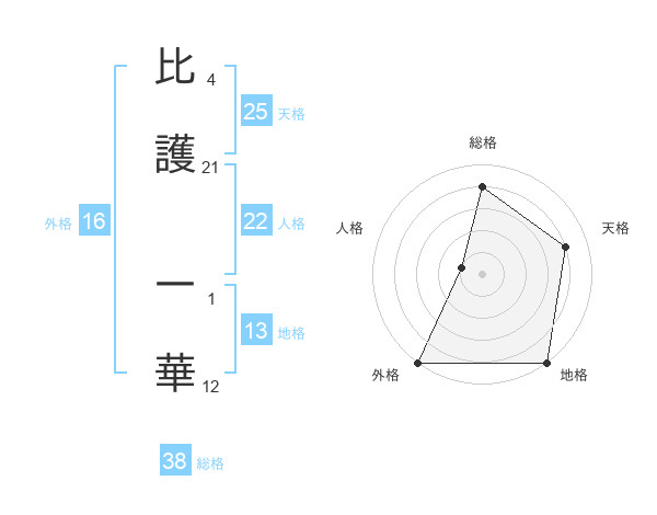 比護 一華さんの総格は38画の4点!