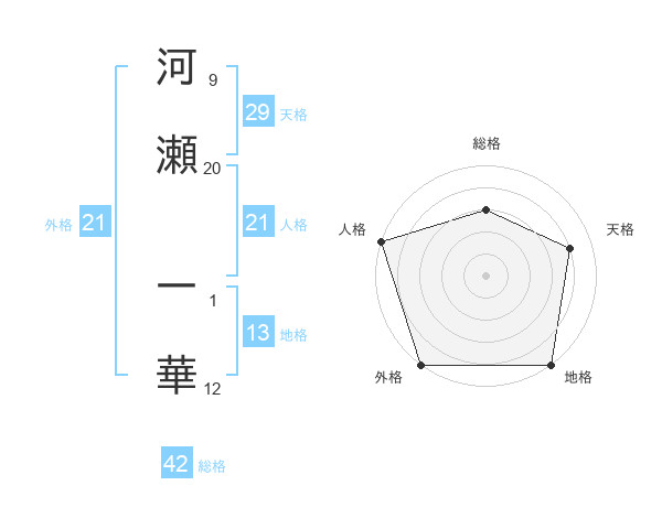 河瀬 一華さんを姓名の画数から五運を鑑定
