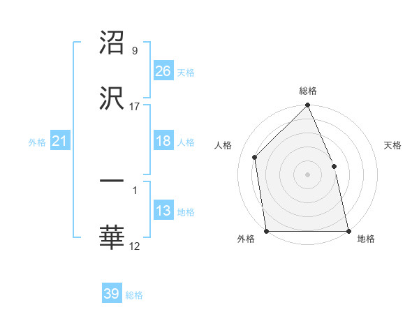 沼沢 一華さんを姓名の画数から五運を鑑定