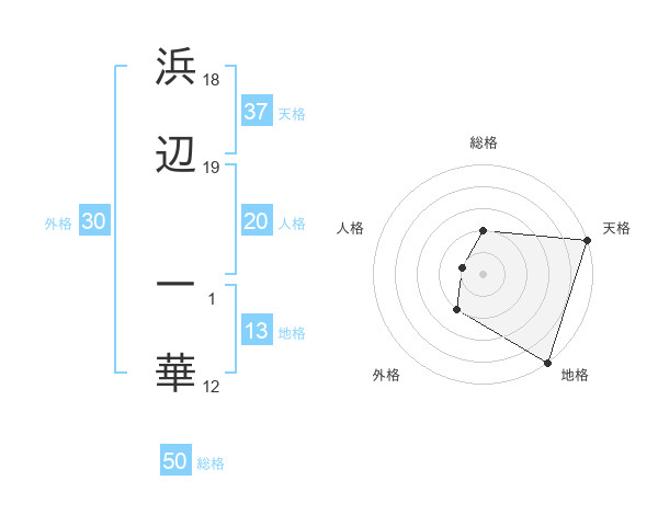 浜辺 一華さんの総格は50画の2点!
