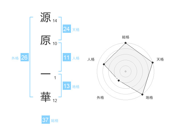 源原 一華さんの天格は24画の5点!