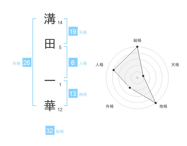 溝田 一華さんの総格は32画の5点!