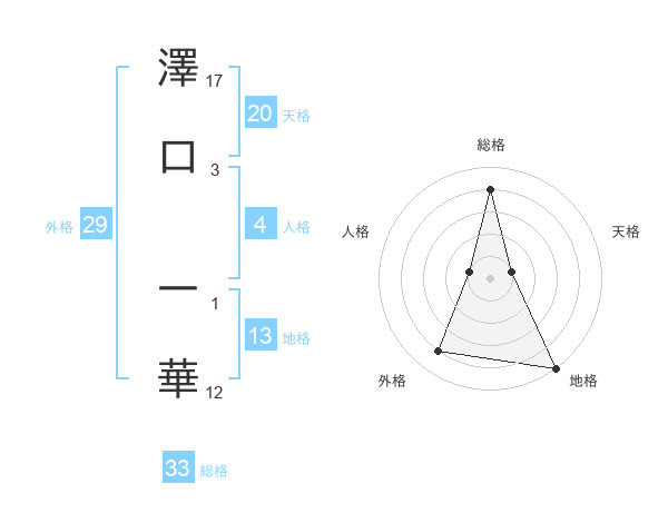 澤口 一華さんの天格は20画の1点!