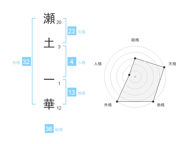 瀬土 一華さんの外格は32画の5点!