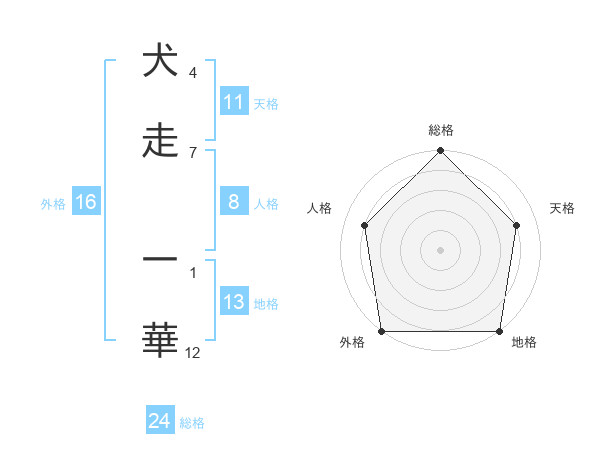 犬走 一華さんの総格は24画の5点!