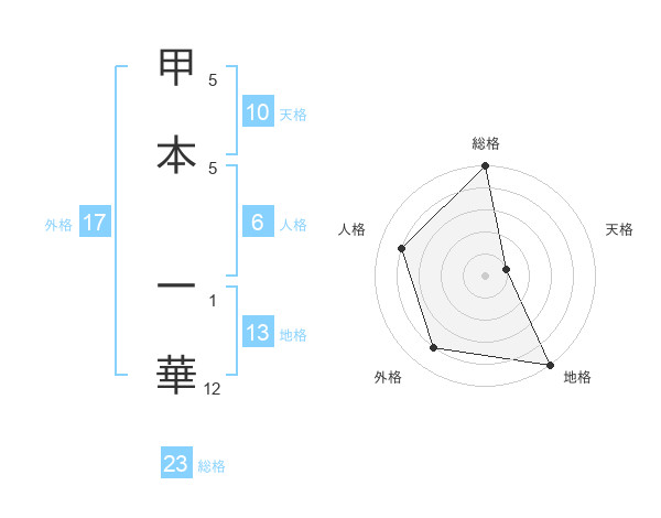 甲本 一華さんの外格は17画の4点!