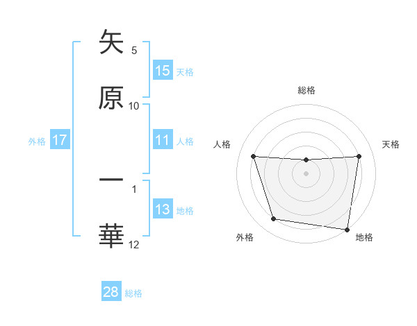矢原 一華さんの天格は15画の4点!