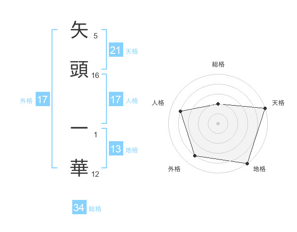 矢頭 一華さんの天格は21画の5点!