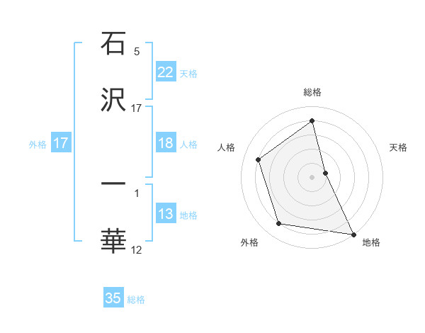 石沢 一華さんの天格は22画の1点!