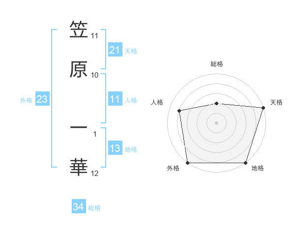 笠原 一華さんの天格は21画の5点!