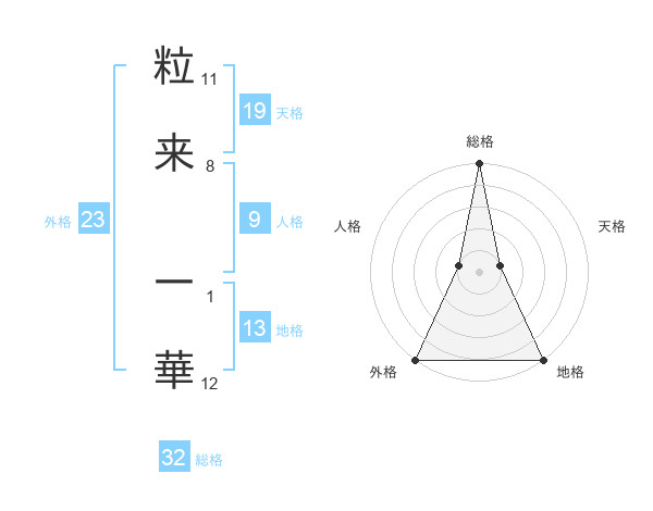 粒来 一華さんの外格は23画の5点!