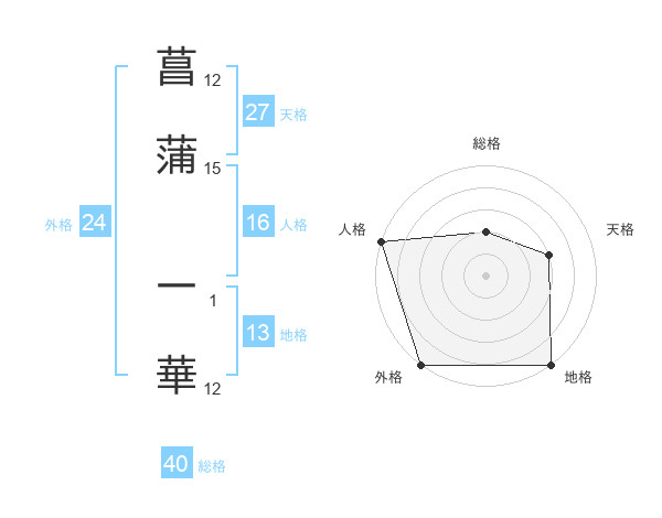 菖蒲 一華さんの外格は24画の5点!