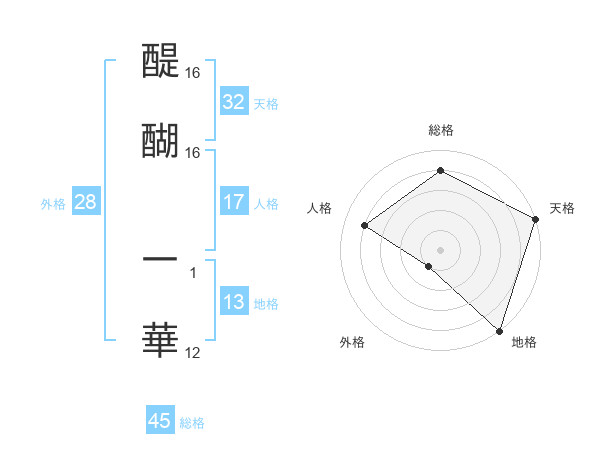 醍醐 一華さんの天格は32画の5点!