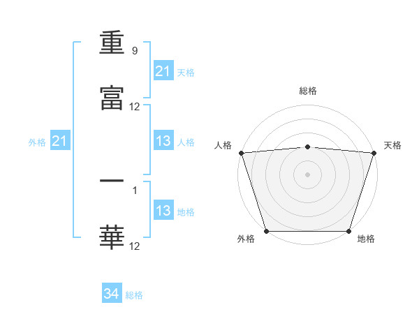 重富 一華さんの天格は21画の5点!
