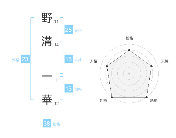 野溝 一華さんの総格は38画の4点!