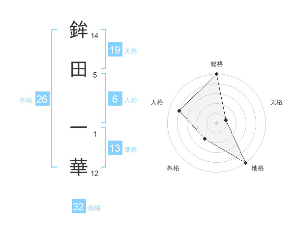 鉾田 一華さんの天格は19画の1点!