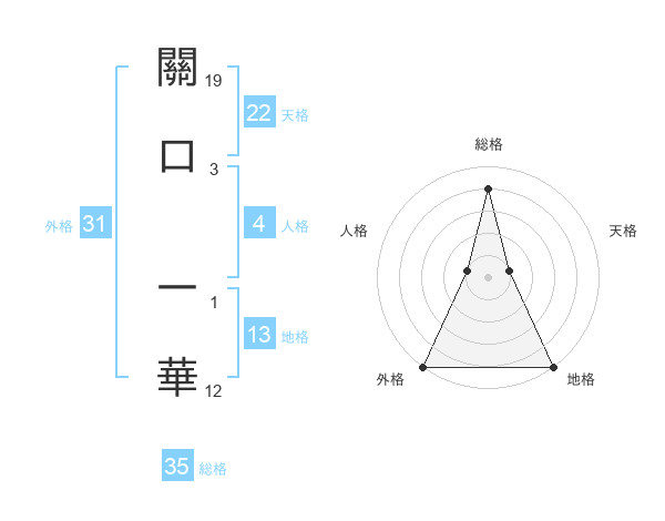 關口 一華さんの総格は35画の4点!