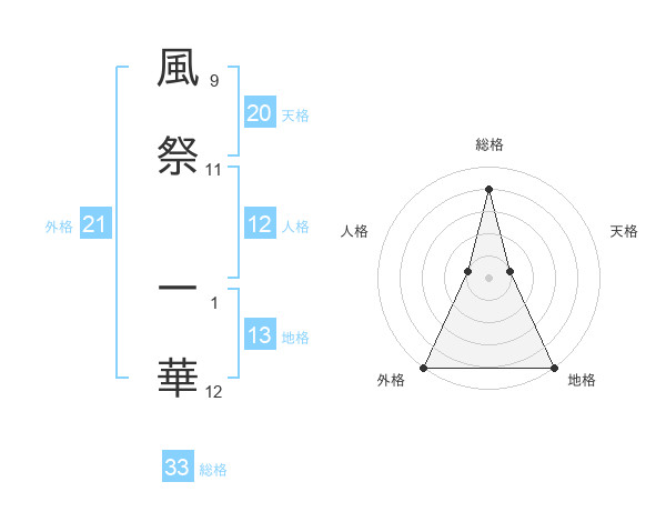 風祭 一華さんの外格は21画の5点!