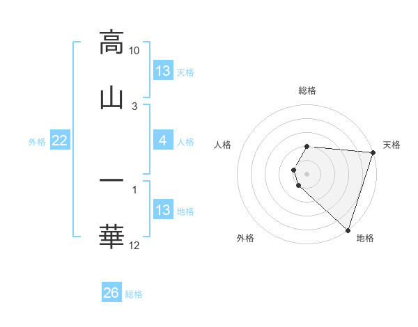 高山 一華さんの天格は13画の5点