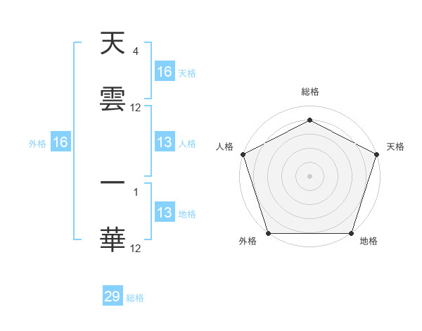 天雲 一華さんの天格は16画の5点!