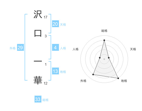 沢口 一華さんの総格は33画の4点!