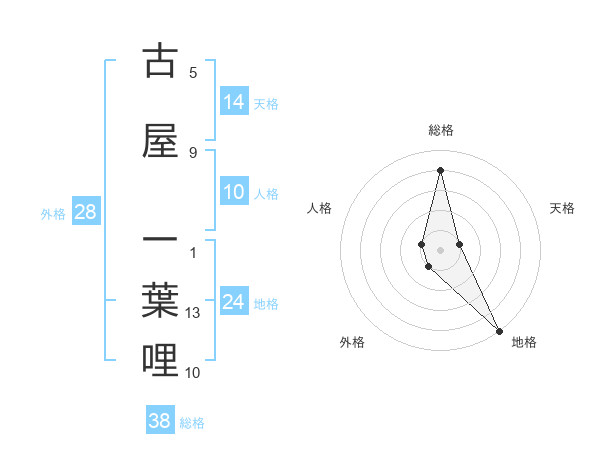 古屋 一葉哩さんの総格は38画の4点!