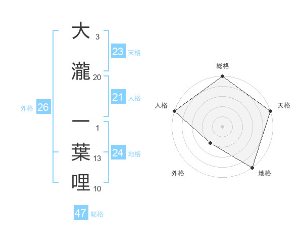大瀧 一葉哩さんを姓名の画数から五運を鑑定