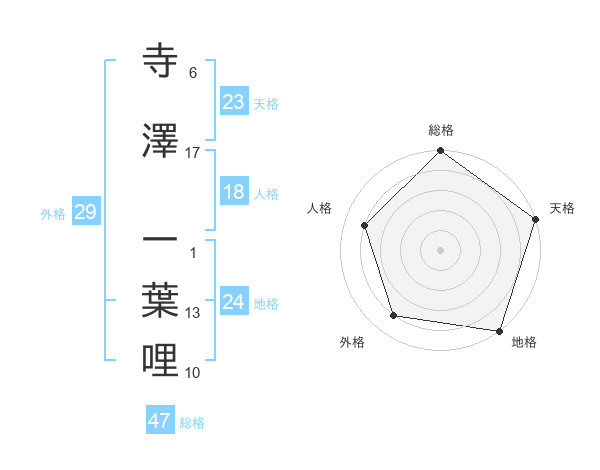寺澤 一葉哩さんを姓名の画数から五運を鑑定