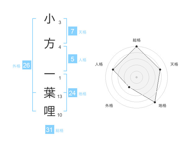 小方 一葉哩さんを姓名の画数から五運を鑑定